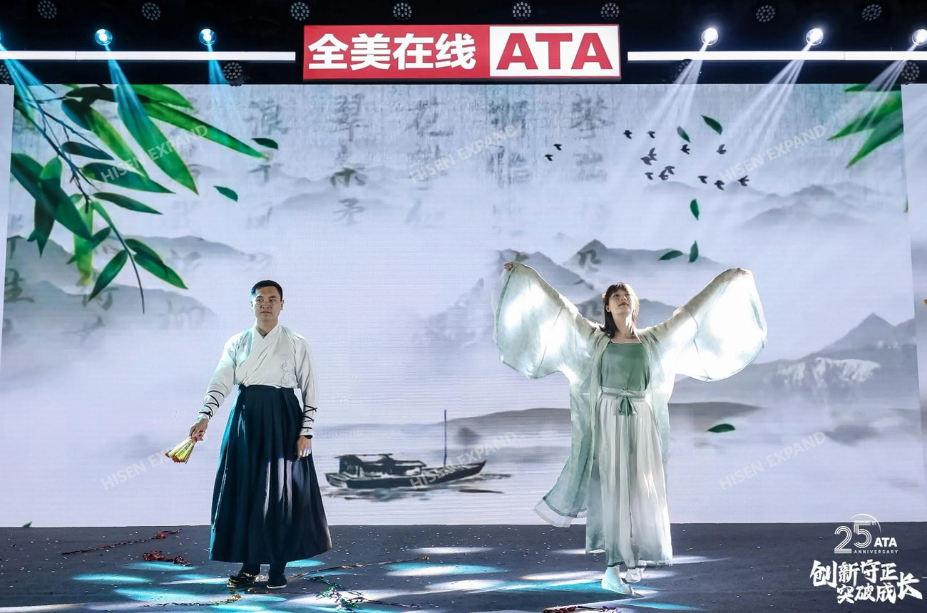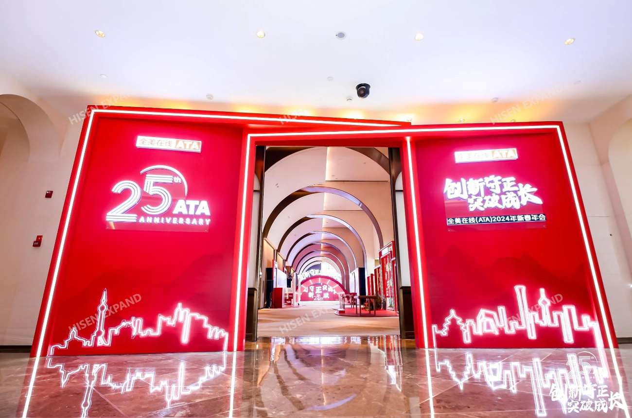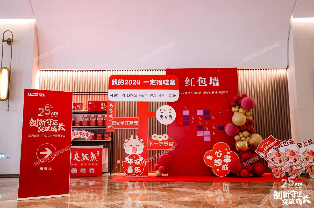 岁月鎏金,共聚欢愉,缤纷岁末,敬颂冬绥,凝心聚力,势必不凡,辞旧岁,顾一载兴盛,启今朝,话来日畅想,新一年,新征程,新祝福,新期待,2024全美在线年会如约而至精心装点的晚宴现场,鲜花、灯光、音乐,满满的氛围感。大家纷纷穿上最精美的衣服,在好运墙上签到,在网红打卡点上留下,美美的照片。