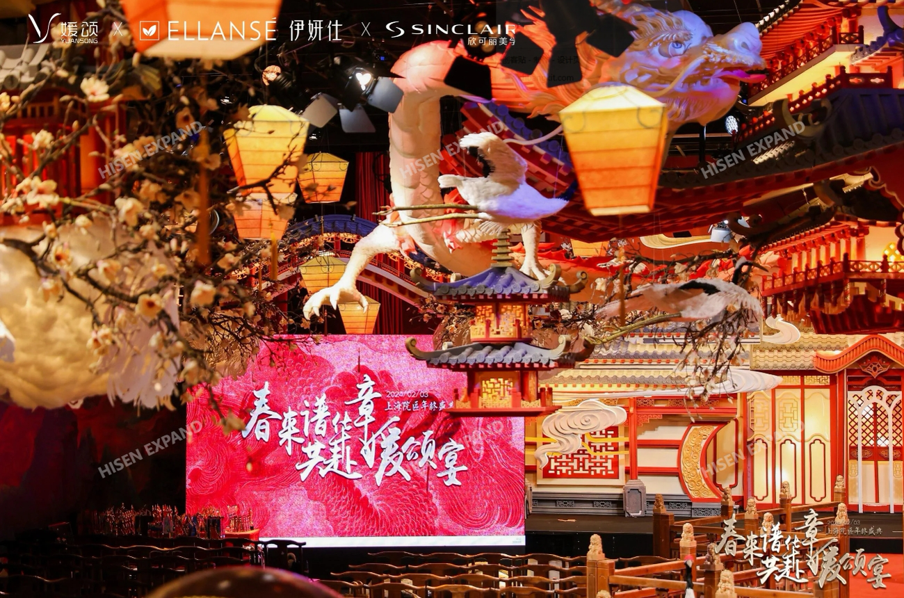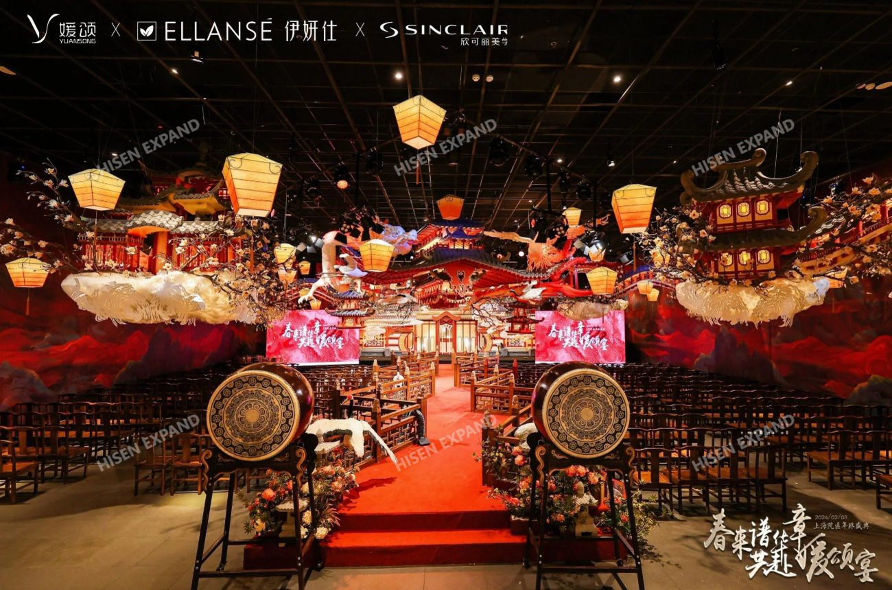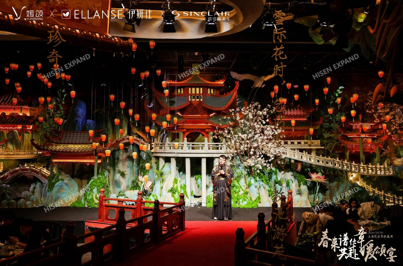 2024年2月3日,“春来谱华章 共赴媛颂宴”媛颂上海院区年终盛典在格乐利雅艺术中心举办。活动现场以国风、古典氛围营造,临近春节现场还设置了许多与年味、年俗相关的互动体验和布置。现场对突出贡献的员工和团队进行了隆重的颁奖仪式,晚宴环节还有轻松的节目表演和抽奖环节。