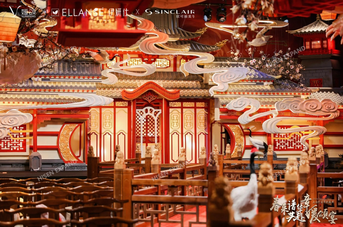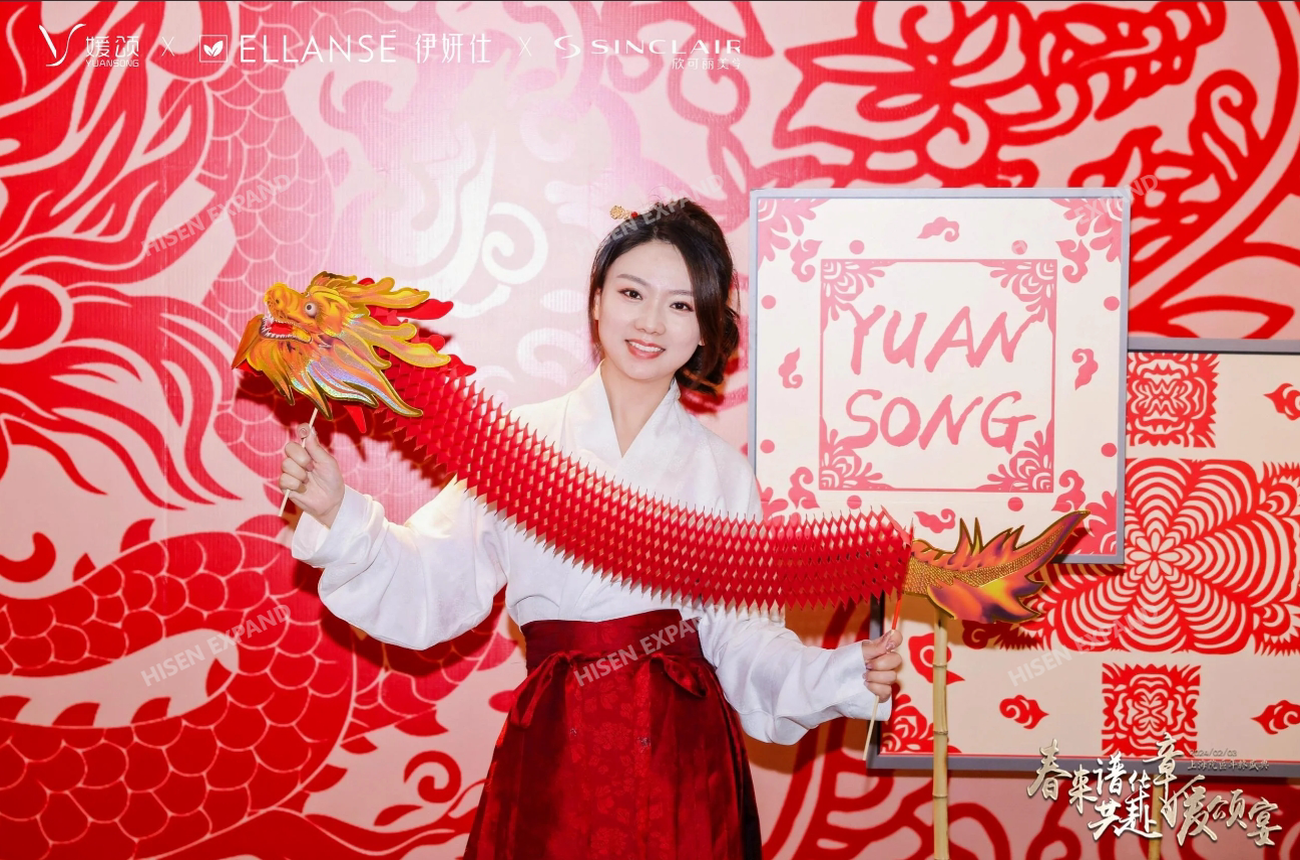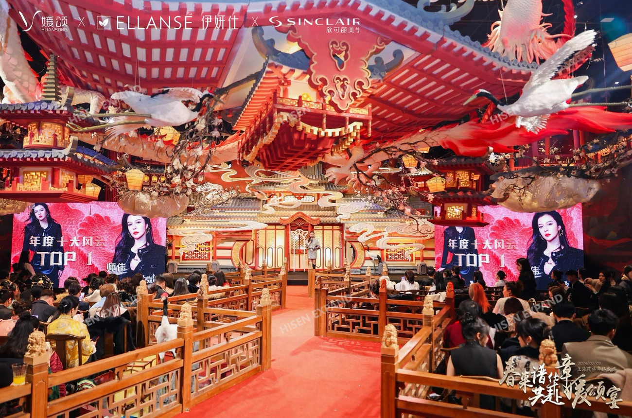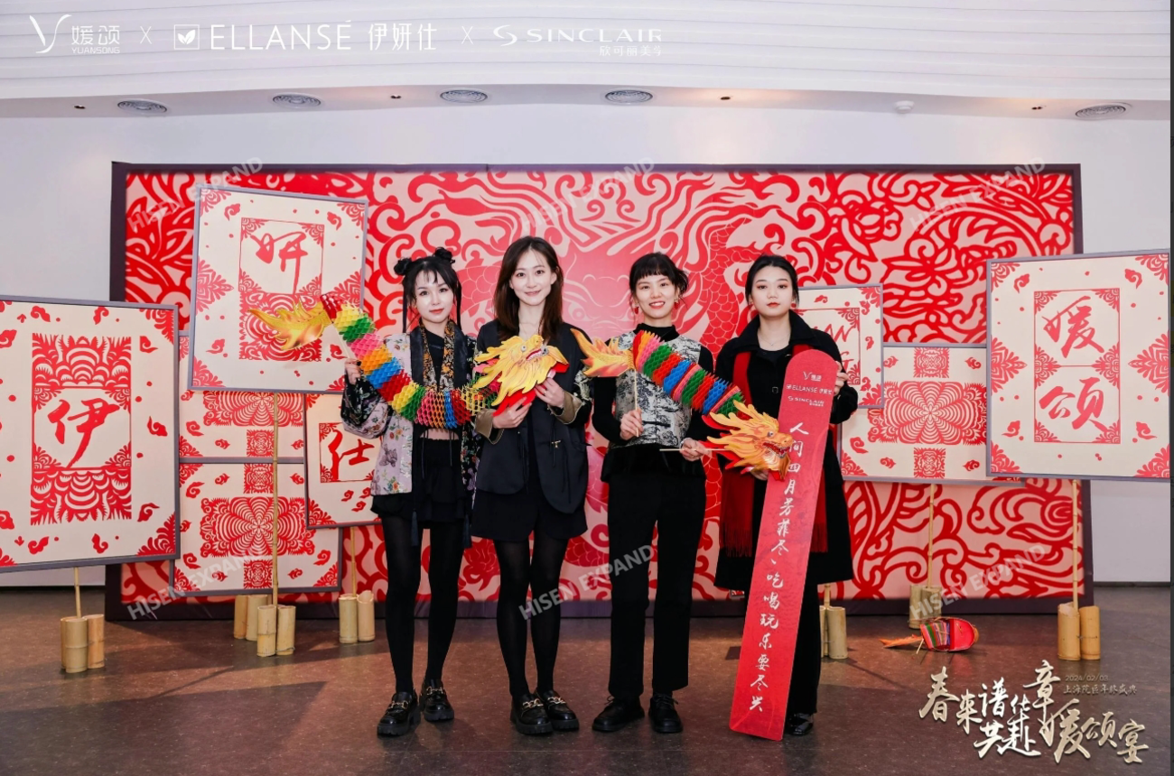2024年2月3日,“春来谱华章 共赴媛颂宴”媛颂上海院区年终盛典在格乐利雅艺术中心举办。活动现场以国风、古典氛围营造,临近春节现场还设置了许多与年味、年俗相关的互动体验和布置。现场对突出贡献的员工和团队进行了隆重的颁奖仪式,晚宴环节还有轻松的节目表演和抽奖环节。