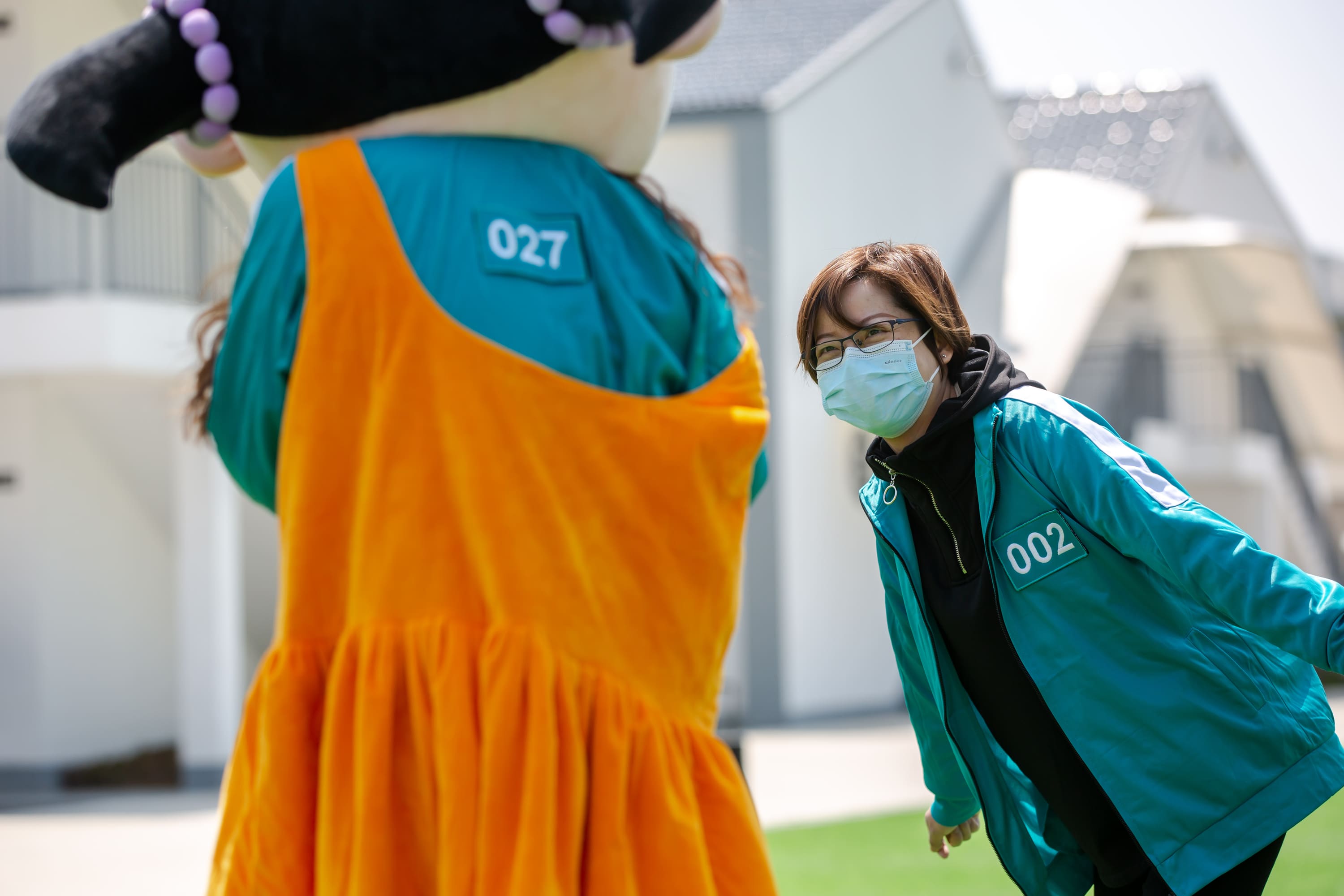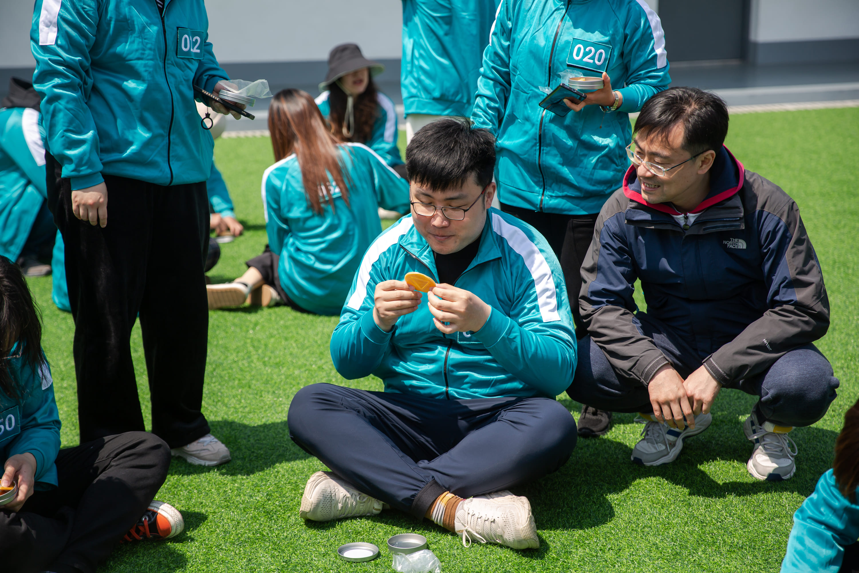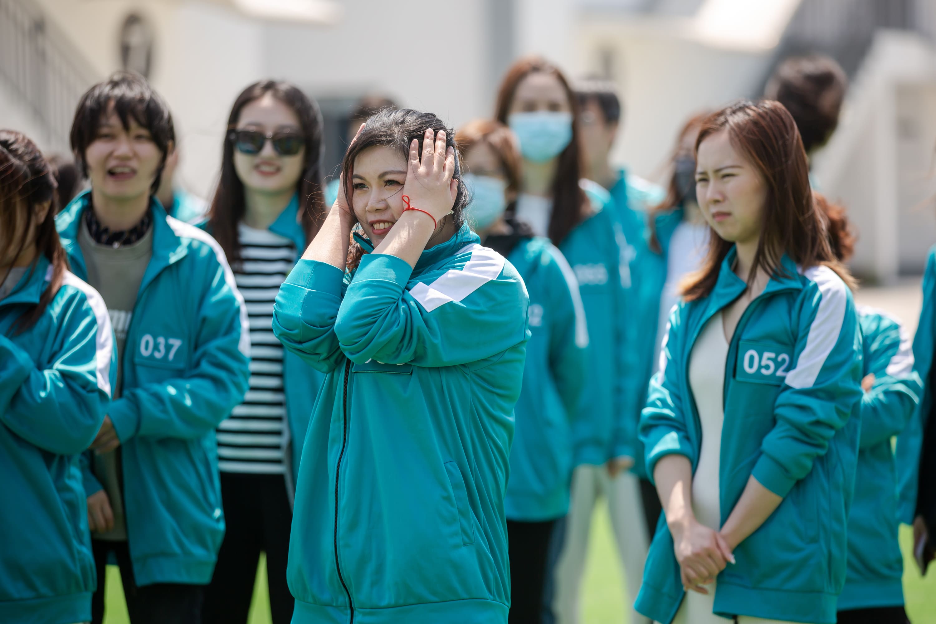 2023年,嘉定支行,在长兴岛郊野公园进行了鱿鱼游戏主题的团建,休闲放松的同时各小组也不失团队竞争的意识。
