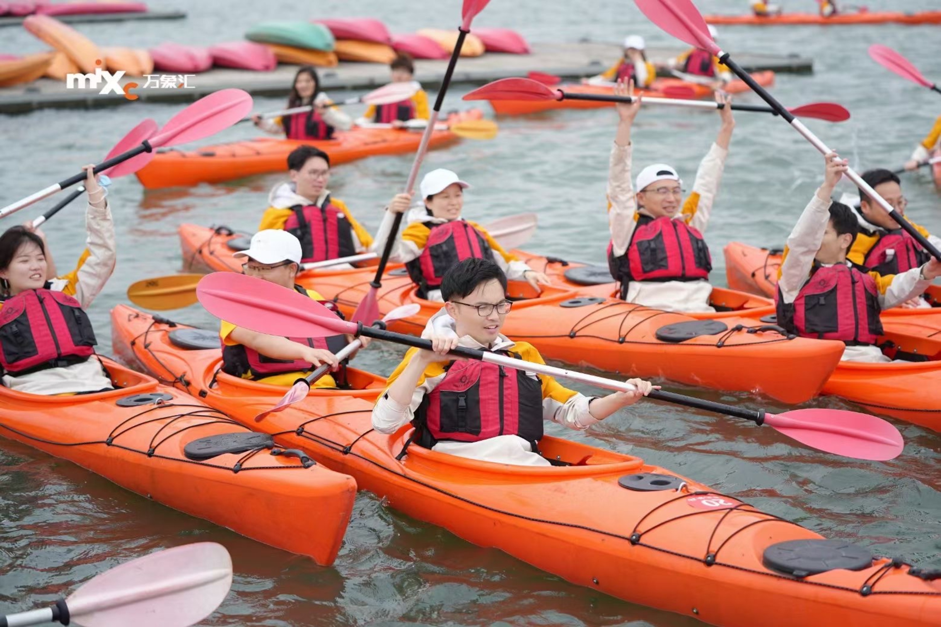 2024年4月13日,万象汇的各位小伙伴在上海皮划艇主题团建活动。此次以“风雨“桐”舟,奋楫笃行”为主题,寓意万象汇的伙伴一起风雨前行、不怕困难,现场活动中的皮划艇整齐围在一起象征着万象汇团结、凝聚、皮划艇接力赛中象征着激情活力,都有着把万象汇带向巅峰的决心.